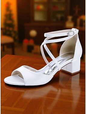 Sandalen met blokhak voor bruidsmeisjes – witte trouwschoenen met enkelbandje en strasssteentjes, open teenschoenen met dikke hak voor formele gelegenheden, gala's en avondfeesten.