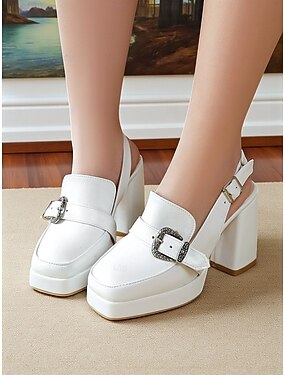 Zwarte slingback platform loafers voor dames - schoenen met dikke hak en western gesp voor op kantoor, feestjes en vintage-geïnspireerde outfits