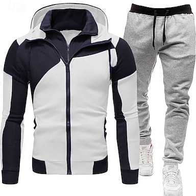 Voor heren Trainingspak Kledingset Truien instellen Capuchon Buiten Dagelijks Sport Rits omhoog Zak Trekkoord Kleurenblok Zwart Wit Rood Polyester Sportkleding Modieus Streetwear Lente