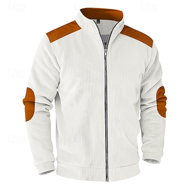 Voor heren Lichtgewicht jack Corduroyjack Vrijetijdsjas Vakantie Dagelijks Zak Lente Herfst Kleurenblok Modieus Klassiek Opstaand Normaal Abrikoos Zwart Wit Geel Wijn Jacks