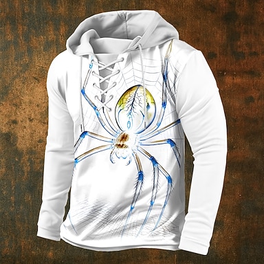 Voor heren SPIDER 3D Trui met capuchon Sweatshirt Stijlvol Vintage Retro Lange mouw Capuchon Streetwear Zwart Wit Trekkoord Herfst Winter Ontwerper S M L XL XXL XXXL