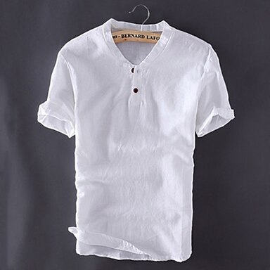 Voor heren Overhemd Katoenen linnen overhemd Wit katoenen overhemd Zomer overhemd Strand hemd Effen Vakantie Hawaii Wit Blauw Khaki Korte mouw V-hals Lente zomer Kleding Standaard