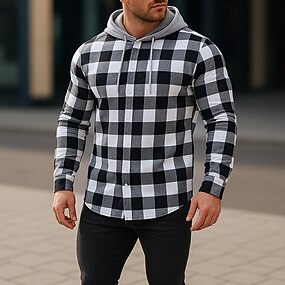 Voor heren Overhemd Normaal shirt Strand hemd blauw Zwart Geel Rood Groen Lange mouw Ruitjes Capuchon Casual Dagelijks Trekkoord Kleding Modieus Casual Comfortabel