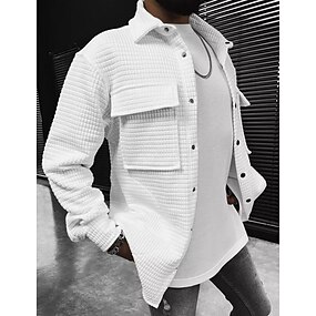 Voor heren Wafel Shirt Overhemdjasje Winterjack Effen Vakantie Alledaagse kleding Zwart Wit Khaki Grijs Lange mouw Revers Herfst Winter Kleding Zak