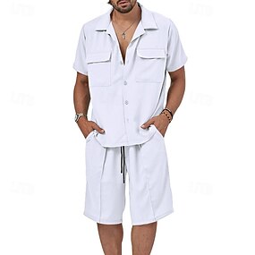 Voor heren Linnen overhemd 2-delig Popover-shirt En Korte broek Linnen korte broek Strandshorts Set Effen Dagelijks Buiten Vakantie Strijkijzer Korte mouw Zomer Modieus Casual Comfortabel Kleding