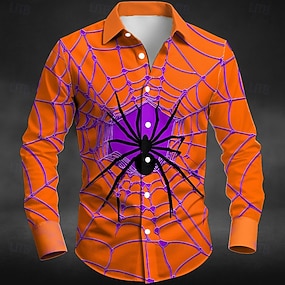 Heren Spin Web Kostuums Overhemd Met Knopen Lange Mouwen Donker Gothic Stijl Buiten Vakantie Zomer Lente Omgeslagen 3D Print Kraag Overhemden Oranje Groen Roze Rood