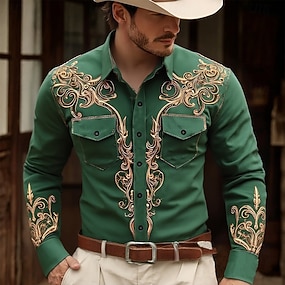 Voor heren Bloemenprint Etnisch Bloemen Overhemd Westers overhemd Cowboyshirt Lange mouw Vintage Retro Buiten Casual Werk Kleding Zomer Lente Herfst Strijkijzer Twee zakken aan de voorkant Overhemden