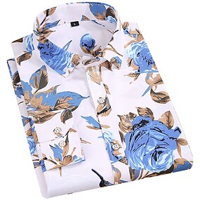 Voor heren Overhemd Button-down overhemd Bruiloft Uitgaan blauw Wijn Zwart Wit Lange mouw Strijkijzer Lente Herfst Kleding Warm