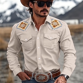 Voor heren Etnisch Westers overhemd Cowboyshirt Lange mouw Westers Casual Lente Herfst Strijkijzer Dichtknopen Beige