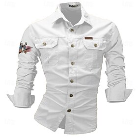 Voor heren Amerikaans / VS. Vaderlandslievend Werkhemden Westers overhemd Cargoshirt Lange mouw Casual Tactisch Sport & Outdoor Uitgaan Winter Lente & Herfst Strijkijzer Afdrukken Zwart Wit Leger