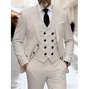 Voor heren Blazer + vest + pantalon Kostuums liiketoiminta Cocktailparty Bruiloft Modieus Casual Lente Herfst Polyester Effen Zak Knop Comfortabel Enkele rij knopen Blazer Rood Groen Beige