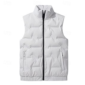 Voor heren Donzen vest Gewatteerd vest Dagelijks Casual Herfst winter Zak met rits Polyester Comfortabel Effen Kleur Rits Opstaand Zwart Wit Licht Groen Hemelsblauw Hesje