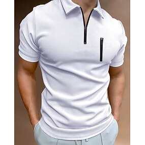 Voor heren Poloshirts Polo met kwartrits Casual Feestdagen Revers Kwart ritssluiting Korte mouw Modieus Basic Effen Kwart ritssluiting Zomer Normale pasvorm Zwart Wit Koningsblauw Int Blauw