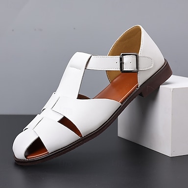 Voor heren Sandalen Romeinse schoenen PU Leder Ademend Comfortabel Anti-slip Gesp Zwart Wit