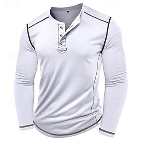 Voor heren Henley-shirt T-shirts Shirt met lange mouwen Effen Henley Casual Feestdagen Lange mouw Button-omlaag Kleding Katoenmix Modieus Ontwerper Comfortabel Essentieel