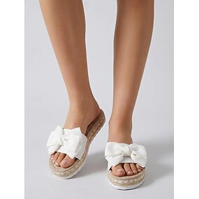 Crème linnen damessandalen met strik - elegante espadrilles met plateauzool voor cruisevakanties en tropische zomervakanties. &luxe resortkleding