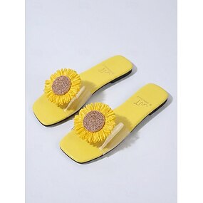 Dames slippers met bloemenprint – transparant bandje met 3D-bloemdetails, lichtgewicht platte slippers voor bij het zwembad, in het resort en tijdens de zomervakantie.