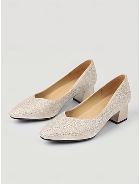Damespumps met kristalversiering en blokhak, elegante gesloten schoenen voor de moeder van de bruid, geschikt voor tuinbruiloften. &formele evenementen