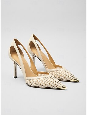 Dames hoge hakken met gouden mesh en slingback, elegante stiletto pumps met spitse neus voor het nachtleven, feestjes en clubs. &avondevenementen