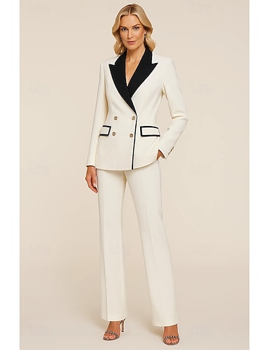 Dames 2-delige pakken Schede liiketoiminta Kantoor Werk Stretch crêpe Elegant minimalistische Kleur Clash Lange mouw Tot de grond Inkeping Dubbele rij knopen
