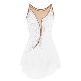 Kunstschaatsjurk Dames Schaatsen Jurken Wit Lapwerk Open achterkant Rekbaar Opleiding Wedstrijd Kunstschaatskleding Klassiek Kristal / Bergkristal Mouwloos Schaatsen Kunstschaatsen