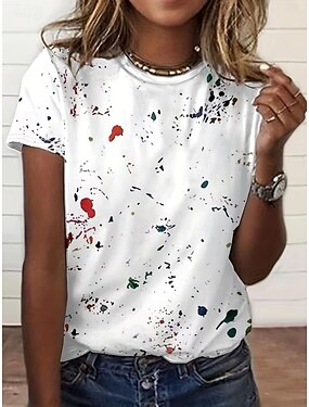 dames t-shirt basic bloemen patchwork print korte mouw normale tops ronde hals casual dagelijks vakantie wit