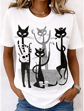 Dames T-shirt Afdrukken Grafisch dier Stijlvol Klassiek Casual Korte mouw Strakke ronde hals Normale tops Dagelijks Sport Uitgaan Wit Zomer Lente