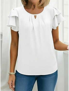 Dames Blouse Met ruches Effen Actief Stijlvol Korte mouw Strakke ronde hals Normale tops Dagelijks Buiten Feestdagen Zwart Wit Blozend Roze Donkergroen Paars Zomer Lente
