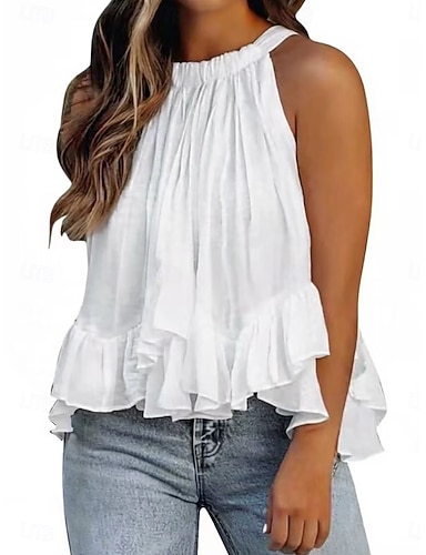 Dames Singlet Effen Modieus Stijlvol Casual Mouwloos Strakke ronde hals Normale tops Dagelijks Uitgaan Weekend Zwart Wit Geel Bruin Groen Zomer Lente