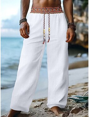 Voor heren Linnen broek Broek Zomerbroek Strandbroeken Zak Trekkoord Elastische taille Effen Comfort Ademend Vakantie Dagelijks Feestdagen Hawaii Boho Zwart Wit