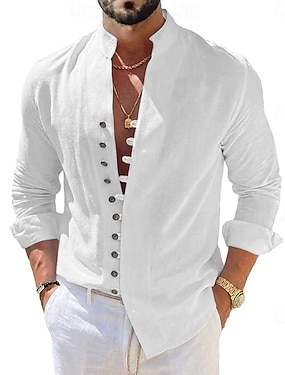 Voor heren Overhemd Katoenen linnen overhemd Wit katoenen overhemd Chinees kraag overhemd Mandarijn kraag overhemd Popover-shirt Effen Vakantie Casual Wit blauw Lange mouw Henley Lente zomer Kleding