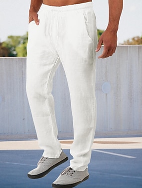 Voor heren Linnen broek Broek Zomerbroek Wijde broek Strandbroeken Trekkoord Elastische taille Recht been Effen Comfort Ademend Volledige lengte Casual Dagelijks Feestdagen Vakantie Modieus Wit