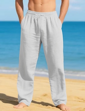 Voor heren Linnen broek Broek Zomerbroek Wijde broek Strandbroeken Trekkoord Elastische taille Recht been Effen Comfort Ademend Volledige lengte Dagelijks Feestdagen Uitgaan Modieus Klassieke Stijl
