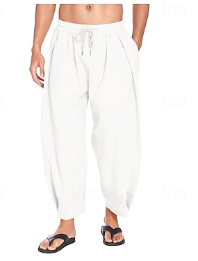 Voor heren Linnen broek Zomerbroek Strandbroeken Harembroek Trekkoord Zak Elastische taille Effen Comfort Ademend Enkellengte Vakantie Dagelijks Feestdagen Hawaii Boho Meerblauw Zwart