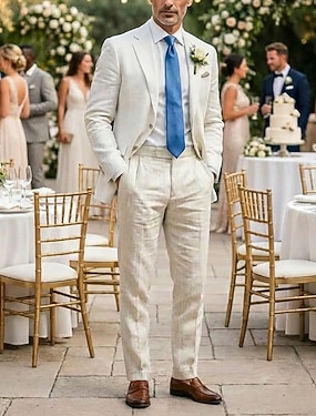 Heren Katoen linnen Pakken Casual Formeel blauw Zwart Wit Effen Kleur Standaard pasvorm Lang Inelastisch