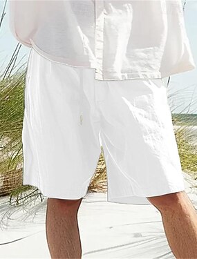 Voor heren Linnen korte broek Zomer korte broeken Strandshorts Trekkoord Zak Effen Comfort Ademend Knielengte Dagelijks Buiten Feestdagen Vakantie Casual Zwart Wit Inelastisch