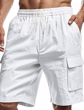 Voor heren Korte broek Linnen korte broek Zomer korte broeken Strandshorts Elastische taille Recht been Effen Ademend Knielengte Casual Dagelijks Feestdagen Vakantie Modieus Wit Khaki Inelastisch