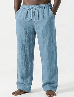 Voor heren Linnen broek Broek Zomerbroek Wijde broek Trekkoord Elastische taille Recht been Effen Comfort Ademend Volledige lengte Huis Dagelijks Feestdagen Vakantie Modieus Spijkerbroekblauw