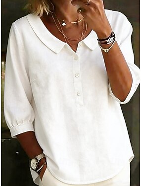 Dames Blouse Imitatie katoenlinnen Knop Effen Kleur Dagelijks Stijlvol Casual 3/4 mouw Overhemdkraag Normale tops Dagelijks Wit Geel Blozend Roze Marineblauw Zomer Lente Herfst