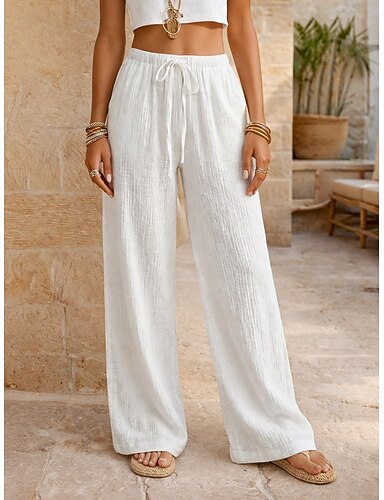 Dames Katoenen linnen broek Zomerbroek Broeken Vakantie Basic Casual / Dagelijks Volledige lengte Natuurlijk Effen Trekkoord Voorvak Comfort Ademend Comfortabel Inelastisch Dagelijks Uitgaan Weekend