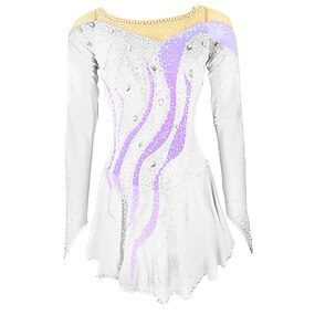 Kunstschaatsjurk Dames Voor meisjes Schaatsen Jurken Wit / Wit Geel en geel Donker paars Asymetrische zoom Netstof Spandex Hoge Elasticiteit Wedstrijd Kunstschaatskleding Kristal / Bergkristal
