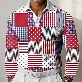 Voor heren Meetkundig Lijn Polo Lange mouw Poloshirt Revers Zakelijk informeel Sportkleding Alledaagse kleding 3D-afdrukken Knop Lente Herfst Winter Rood blauw Groen