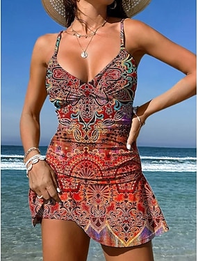 Dames Zwemkleding Tankini Rok Zwempak Elegant Vakantie Bloemig Grafisch Mouwloos Badpakken