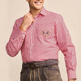 Oktoberfest Geblokt Patroon Lederhosen-shirt Hertenprint Bavarian Duits Weiden Voor heren Carnaval Bierfestival Doek in traditionele stijl Hemd