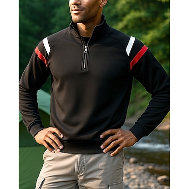 Voor heren Sweatshirt met kwartrits Lange mouw Opstaand Kleding Bovenlichaam Buiten Zacht Lente Herfst Katoen Gestreept Zwart Tennis Training Hardlopen