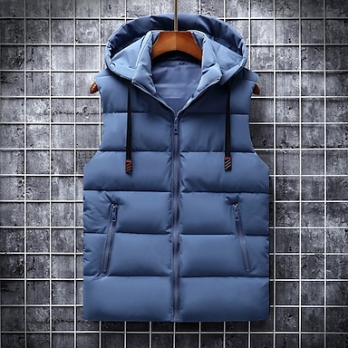 Voor heren Puffervest Vest Dagelijks Vakantie Afspraakje Modieus Casual Winter Zak Polyester Houd Warm Comfortabel Effen Kleur Rits Capuchon Normale pasvorm blauw Zwart Donkergrijs Hesje