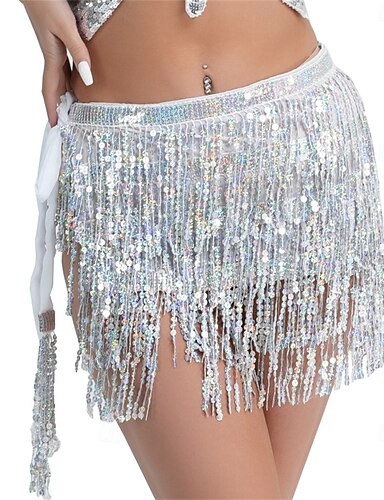 Samba Dancewear Buikdans Rok Pailletten Kwast Rok Wikkel Sprankelende Tinsel Franje Rokken met Pailletten en Munten Prestatie Kostuum