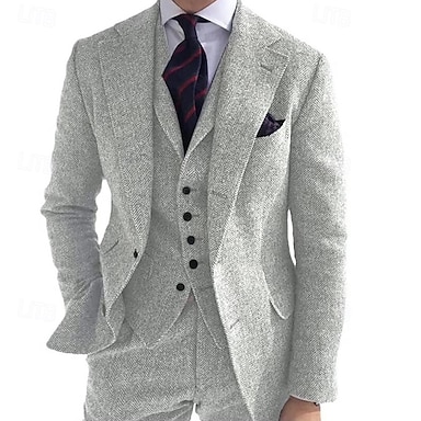 Voor heren Tweed vest Vest Formeel Bruiloft Vakantie Casual Vintage Modieus Lente Herfst Zak Knop Polyester Tweed Comfortabel Effen Visgraat Enkele rij knopen V-hals Met inkeping Normale pasvorm