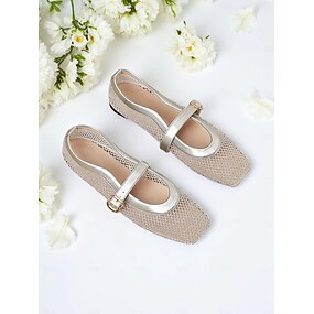 Mary Jane-flats van goudkleurig mesh voor dames – elegante schoenen met lage hak en gespband voor casual uitjes en dagelijks gebruik