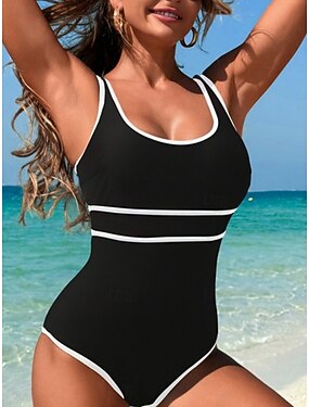 Dames Eendelig Badpak Slankmakende Kleurblok Monokini Buikcontrole Hoge Taille Slank Rugloos Vakantie Strandkleding Gestreepte U-hals Mouwloos Badpakken